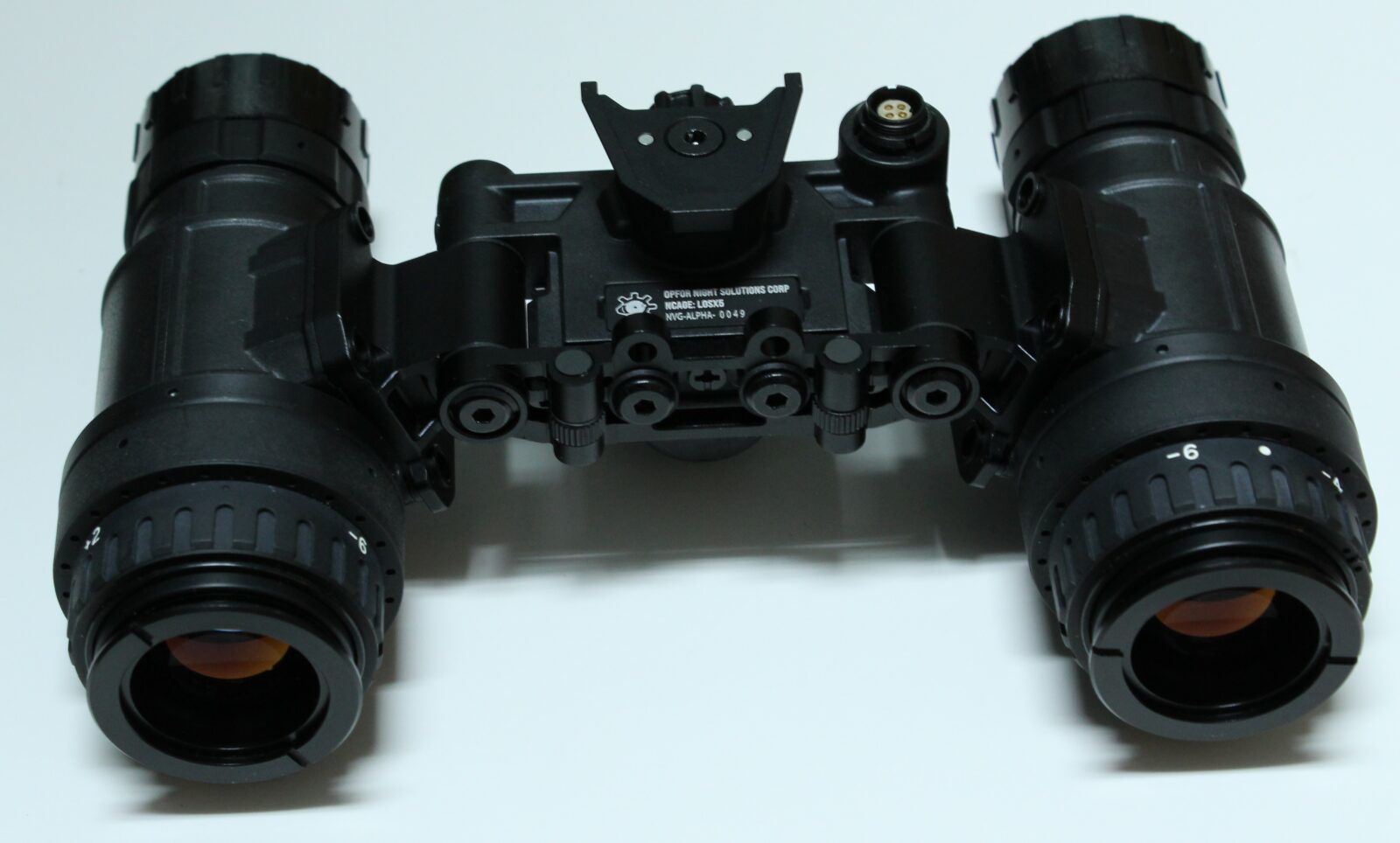 The NVG-ALPHA is a full featured, “ruggedized” night vision binocular made of both polymer and aluminum. Polymer is used to reduce weight while aluminum is used for structural reinforcement in critical areas. The ALPHA was designed for the end user. When articulated upwards the independent pod shut off kicks in to mitigate splashback and light damage to your tubes. All electronic device features are controlled with the single central rotating push button. Manual gain is fully adjustable turning the knob. Gain memory allows the device to recall your settings when turning the device on and off. The power button requires a 1 second hold to power to reduce the chances of accidental device activation. Further button press sequences control the IR illuminator as well as toggling ON/OFF the different auto shutoffs and allow you to conduct a factory reset of the board if needed. The rear mounted IPD stops are extremely intuitive to adjust. Rolling the adjuster outward moves the pod outward, and rolling the adjuster inward adjusts the pod inward allowing an unmatched custom user experience.